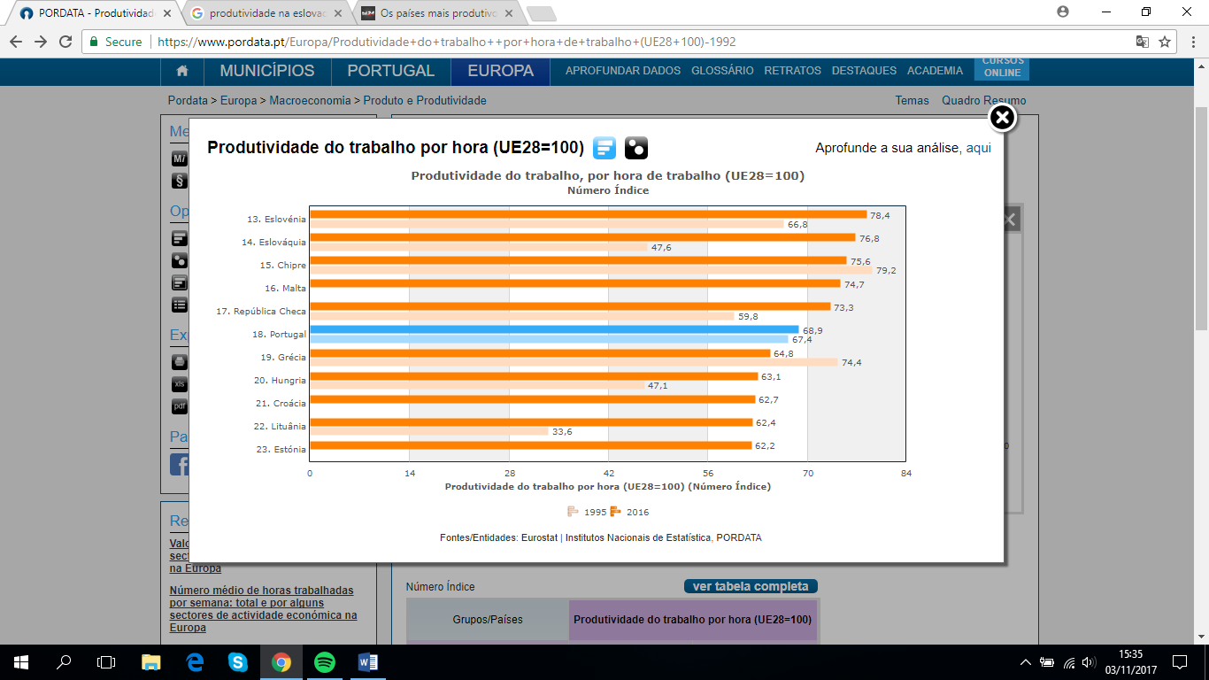 caso da União Europeia, Portugal em 2016 teve uma produtividade de 68,9. Tendo